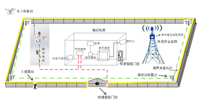 本著快速部署、節(jié)能環(huán)保、綜合運(yùn)維管理為目的,南京泰通整合軍用方艙技術(shù),將箱式智能機(jī)房、智能門控、智能新風(fēng)、智慧安防、鐵塔安全等技術(shù)綜合應(yīng)用,為基站鐵塔建設(shè)和運(yùn)維管理提供了一種有效的綜合解決方案。